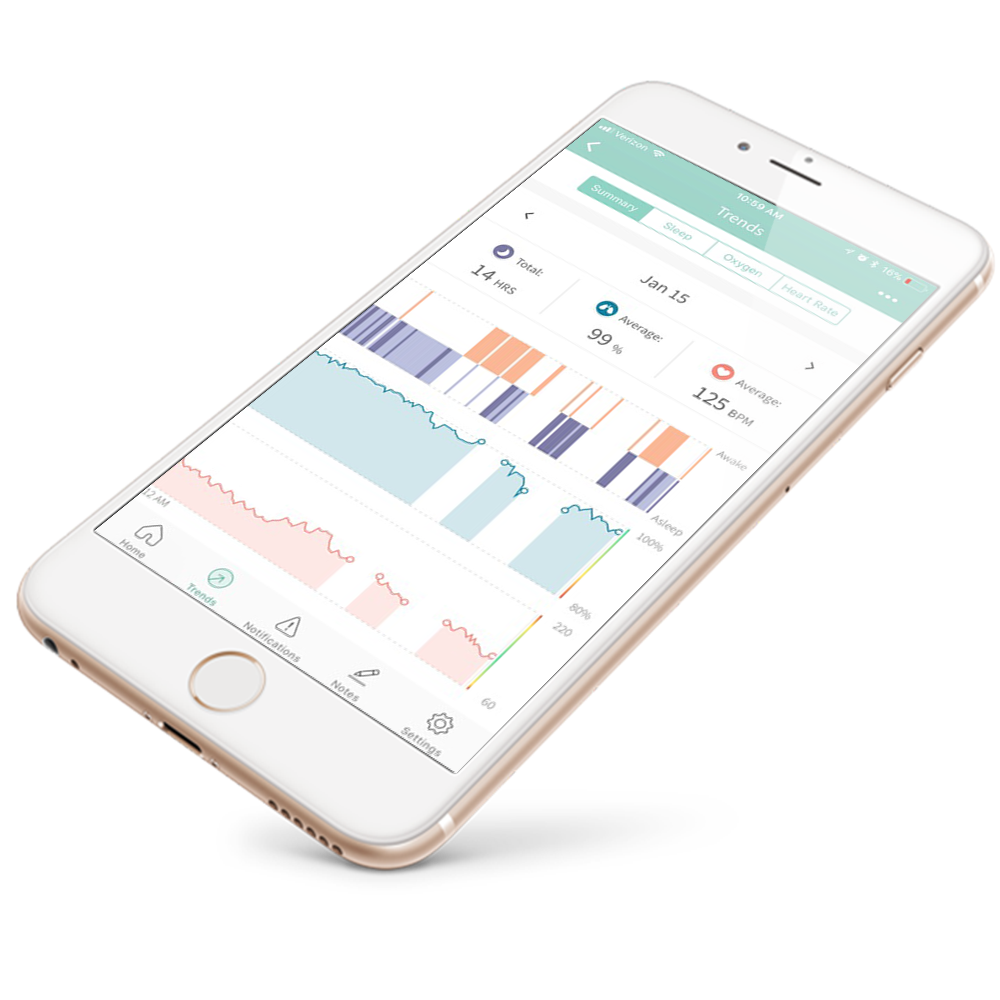 See trended heart rate & oxygen levels. View 24 hour or 1-month windows.
