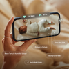 Track pulse rate, oxygen level trends (updated every 10 minutes), and sleep patterns while streaming secure video directly to your phone. Built-in temperature and humidity tracking helps maintain a safe and comfortable sleep environment.